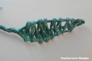 3.Dzielimy rurki na 5 części, po 3 na płatek. Dalej pleciemy w górę 4 razy i zakańczamy.