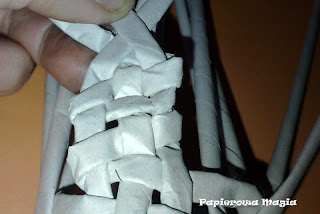 2.Wyplatamy splotem podstawowym-jak mały koszyczek,w górę 3 razy.