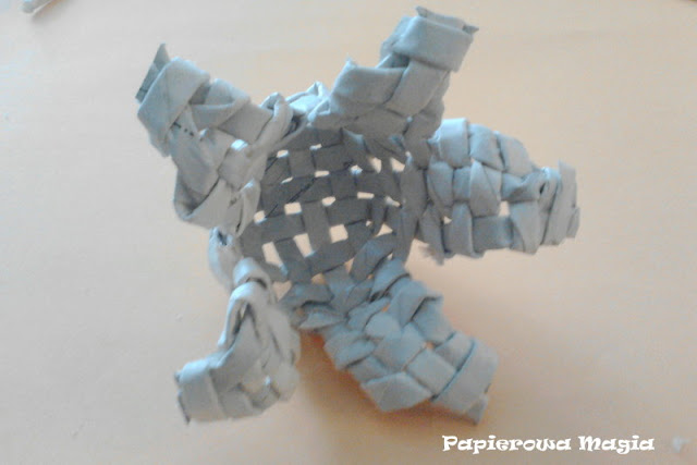 3.Dzielimy rurki na 5 części, po 3 na płatek. Dalej pleciemy w górę 4 razy i zakańczamy.